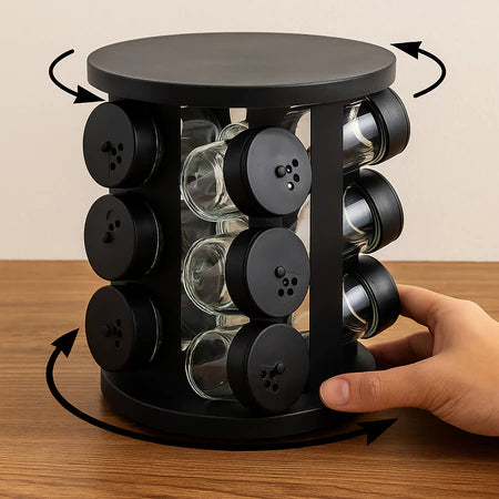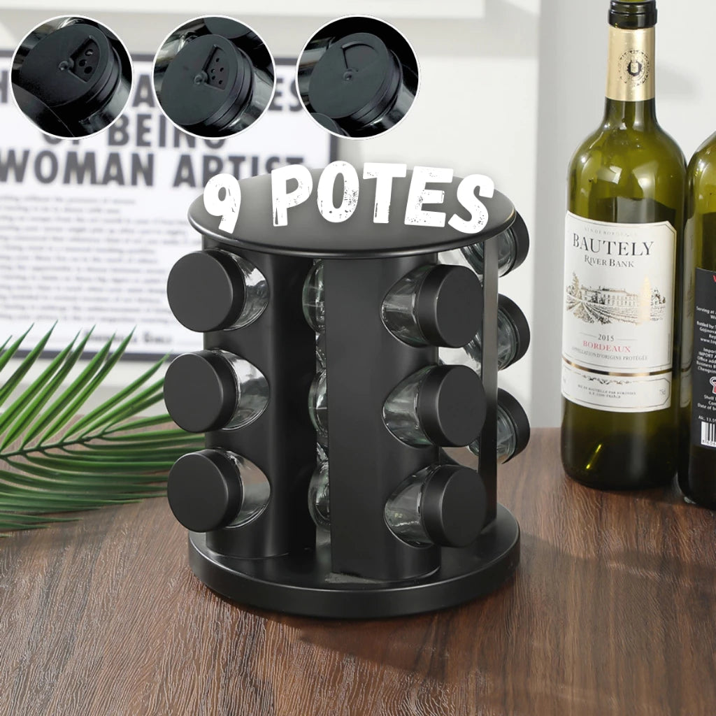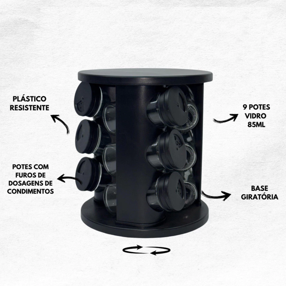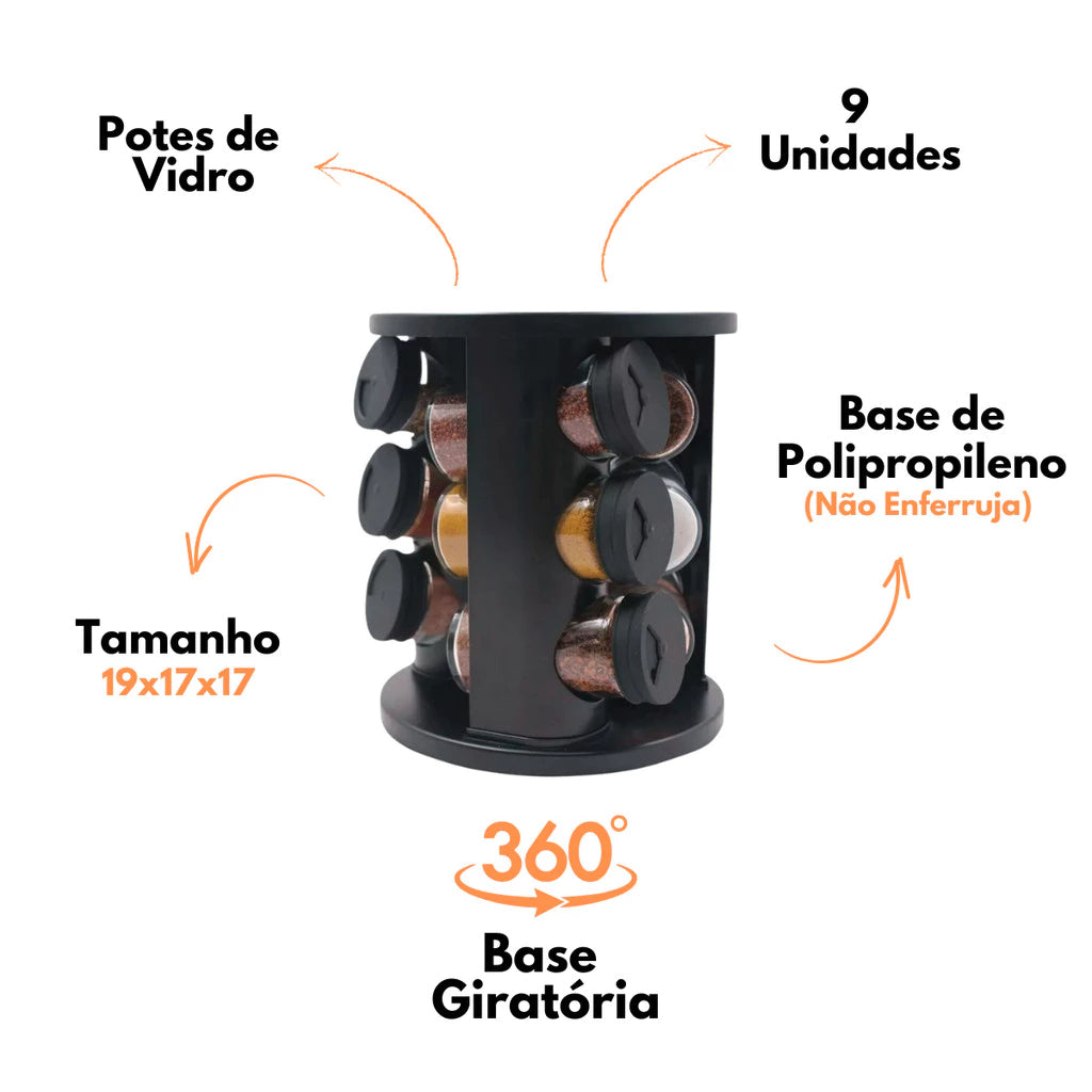 Gire facilmente o suporte e escolha seu tempero favorito em segundos, mantendo tudo sempre organizado e acessível.