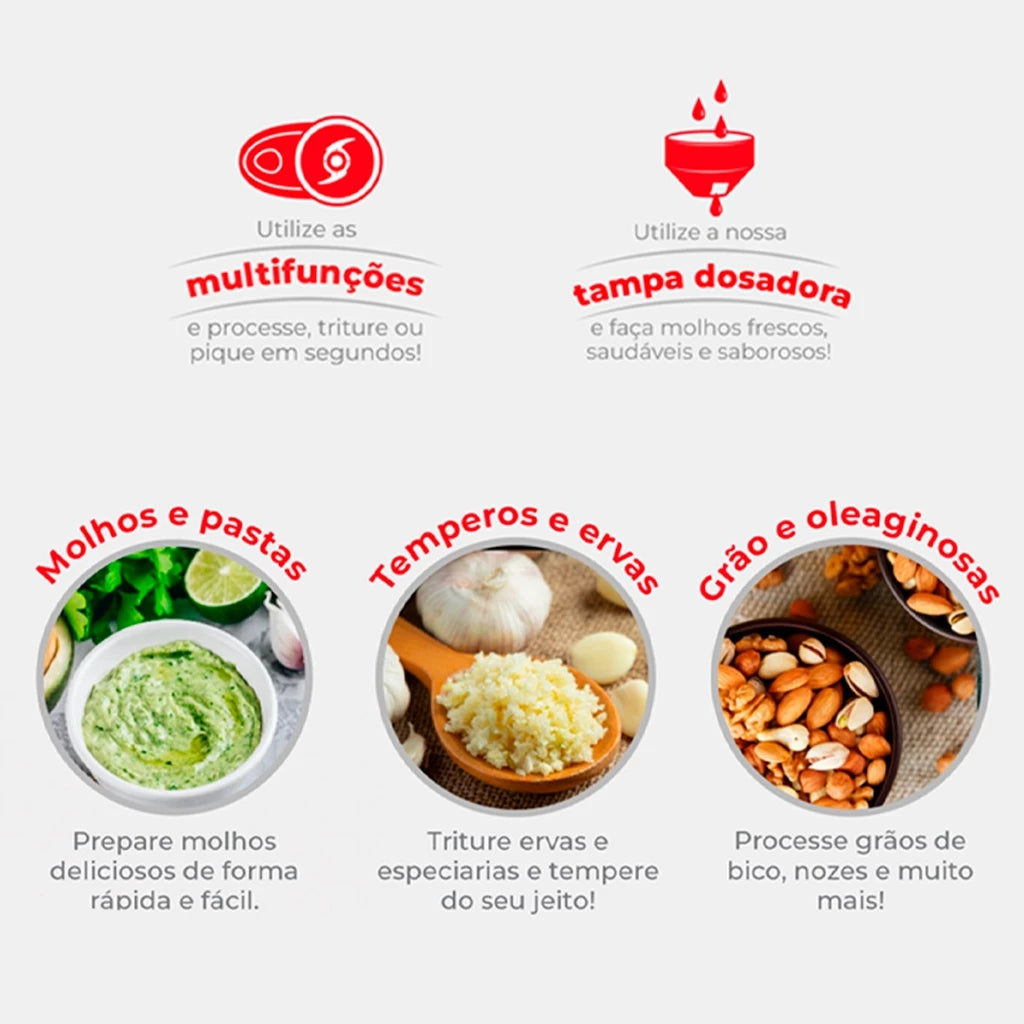 Funções: Triturar, picar e processar